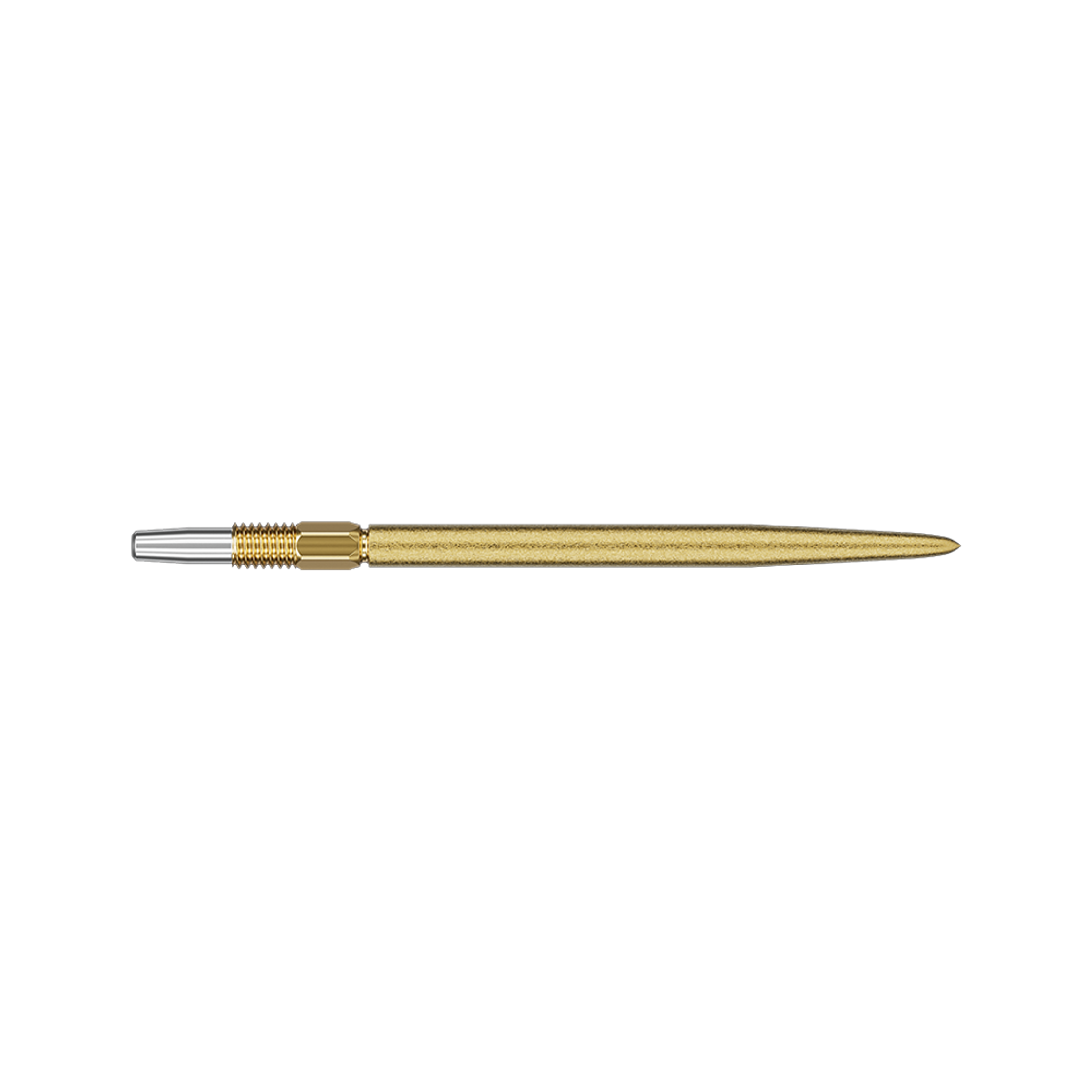 Target Swiss Point SLK in Gold mit einer Länge von 35 mm oder 42 mm - Das System das auch Luke Littler bei der PDC WM 2025 nutzte.