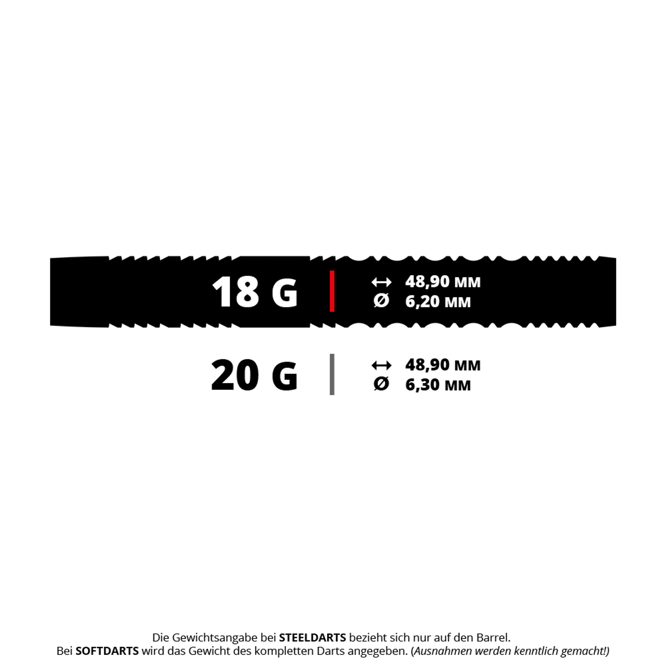 Ausgestattet mit schwarzen Pixel Softtips bieten die Darts eine herausragende Haltbarkeit, minimieren Abpraller und sorgen durch ihre strukturierte Oberfläche für zusätzlichen Fingerhalt – ideal für präzise Würfe unter Wettkampfbedingungen.