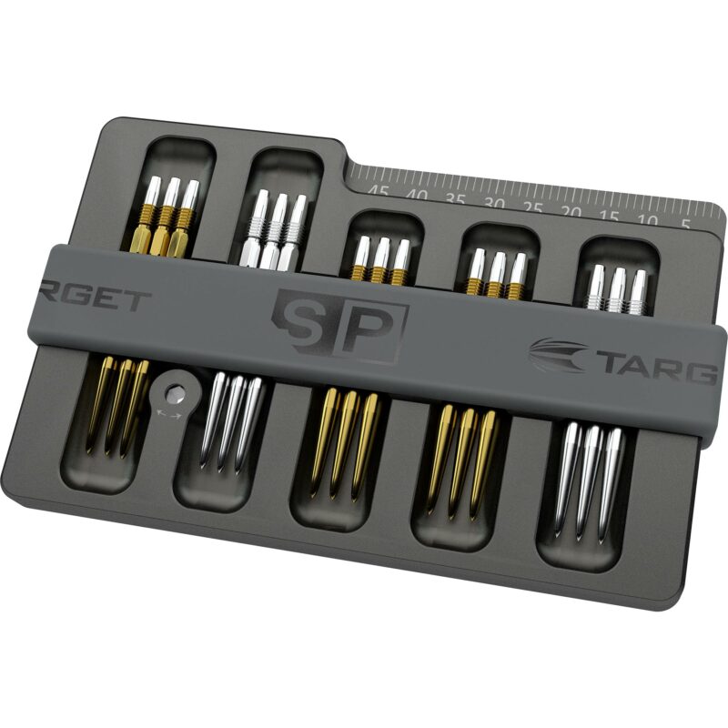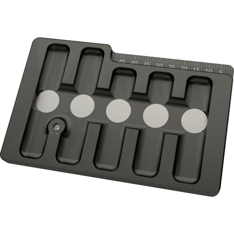 Hergestellt aus gefrästem Aluminium, bietet die Karte Platz für bis zu 5 Sets von Spitzen und hält sie Magnete sicher an ihrem Platz. Zusätzlich werden die Spitzen noch durch ein band gesichert. Das Gerät enthält auch ein Swiss Point-Werkzeug, mit dem die Swiss Point Spitzen in Sekundenschnelle gewechselt werden können, ohne dass ein weiteres Werkzeug zu benötigt wird. Abgeschlossen mit einer schwarzen eloxierten Beschichtung, wird die Swiss Point Safe Box mit einem integrierten Maßband geliefert, um die Länge der Spitzen flexibel nachmessen zu können.