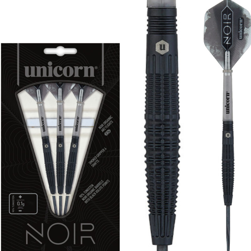 2023 bringt Unicorn mit dem Noir eine lang ersehnte Serie auf dem Markt. Seit Jahren zählen die Noir-Playerdarts zu den begehrtesten Unicorn Darts. Mit dieser eigenen Noir-Serie geht der Wunsch vieler Dart-Fans in Erfüllung. Ein Dart, perfekt abgestimmt bis ins kleinste Detail. Ein Barrel mit schwarzer Titaniumbeschichtung in vier unterschiedlichen Varianten und goldenen Anteilen. Die Noir Serie verfügt über einen hohen 90 % Anteil an Tungsten. Die in grau und schwarz gehaltenen Points, Schäfte und Flights runden diesen Dart eindrucksvoll ab. Das Gewicht ist mit einer Toleranz von +/- 0,1g garantiert. Den Noir gibt es in unterschiedlichen Grammzahlen.